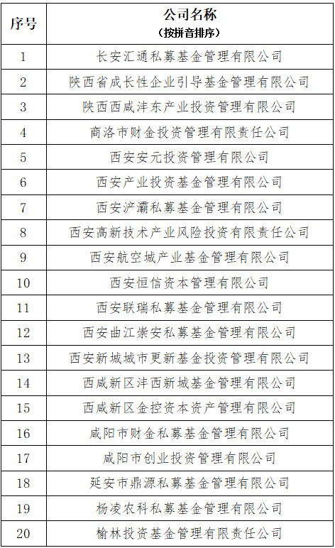 政府投资基金专业委员会的设立,是陕西省证券投资基金业协会响应国办发〔2025〕1号文精神,引导政府投资基金回归本源、提升效能的关键举措。此举意味着陕西在政府投资基金领域的研究、交流与合作进入了组织化、体系化的新阶段,未来“政府投资基金专业委员会”将成为政策制定的“智囊团”、业务创新的“策源地”和产融结合的“连接器”,精准助力陕西现代产业体系的构建。首批专委会由20家委员单位组成: