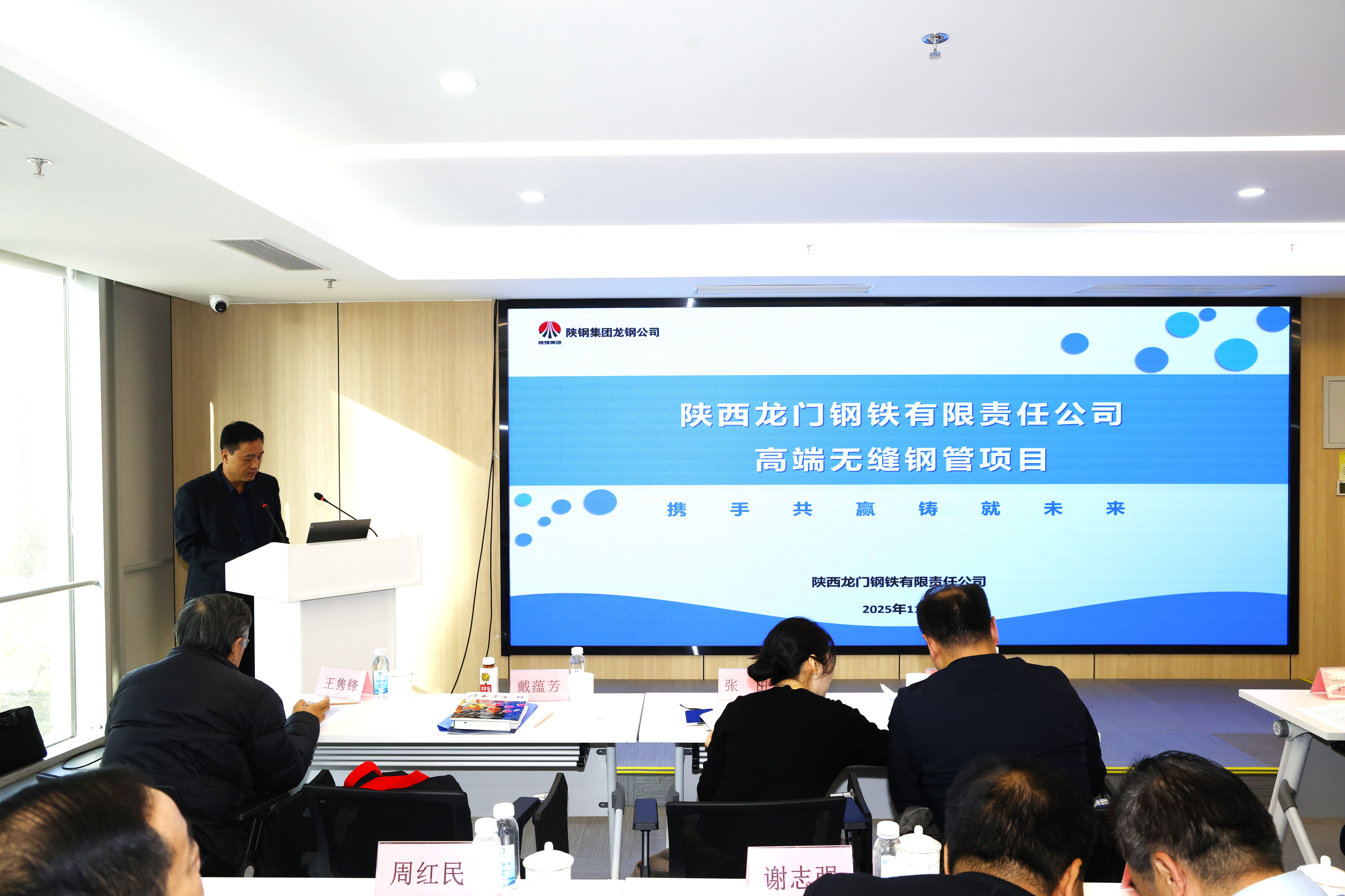 出席会议的还有:陕西股权交易中心总经理李炜,陕西省证券投资基金业协会秘书长哈立新,陕西省钢铁工业协会党支部书记、副会长兼秘书长王隽锋,陕西省政协委员、陕西省钢铁协会副秘书长刘光明,陕西通达钢铁有限公司董事长谢志强,陕西钢铁工业协会常务副秘书长、原陕西龙门钢铁有限责任公司党委书记、董事长陈骁,陕西龙门钢铁有限责任公司董事长周红民,陕西汉中钢铁集团有限公司集团副总裁付汉新,西安电炉所总裁张海涛等相关单位的领导和代表。