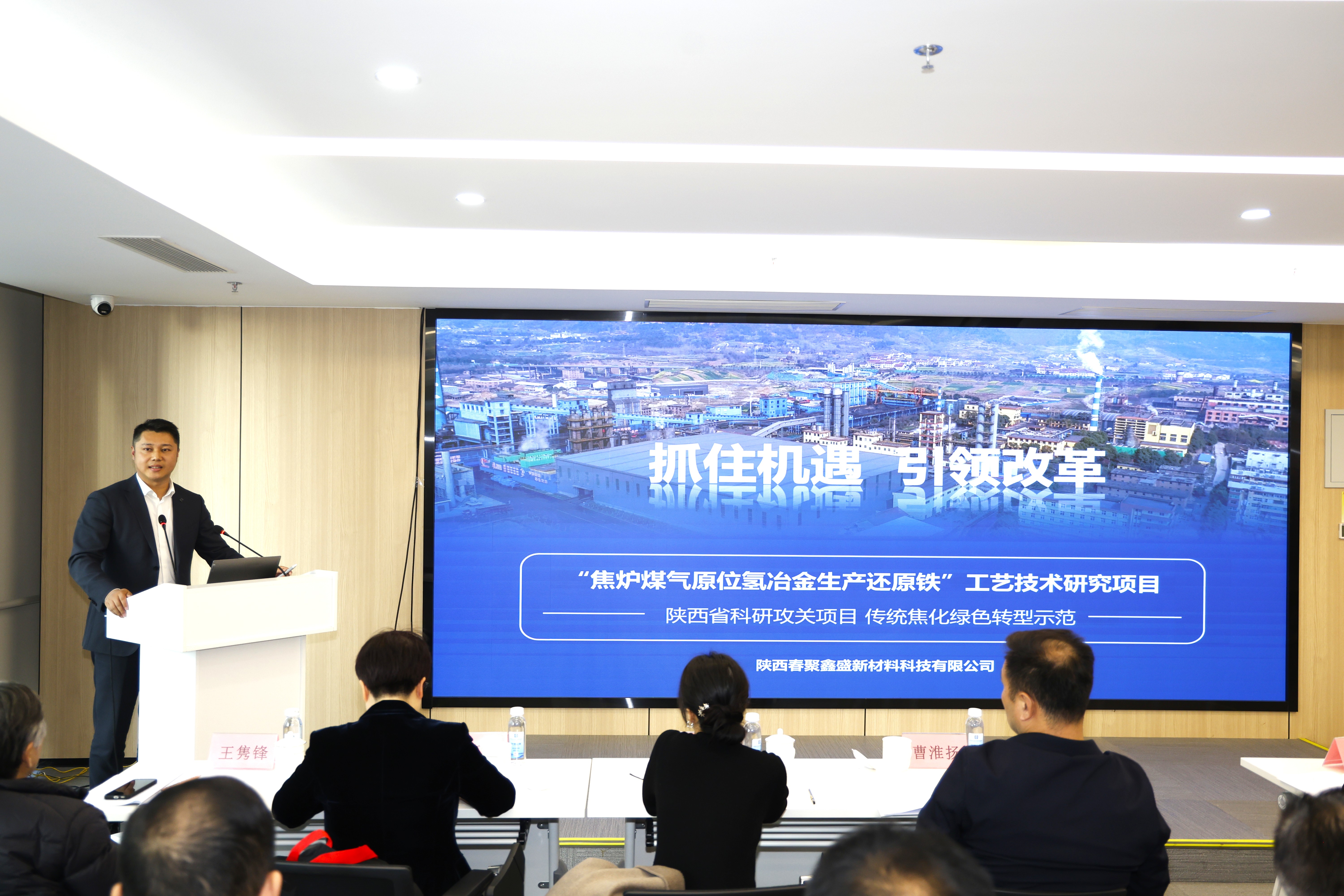 活动现场,八个创新项目依次路演,展现了陕西省钢铁产业转型升级的创新力量:陕西华海新材料科技有限公司纳米铝陶制动科技项目、陕西汉中钢铁集团有限公司钢带冷轧热镀项目、陕西龙门钢铁集团公司转炉熔融渣余热回收利用项目和轧钢厂棒线冷床余热发电项目的研究、陕西龙门钢铁有限责任公司无缝钢管项目、西安电炉研究所有限公司高纯净度高端特种钢冶炼关键技术及装备项目、陕西汉中钢铁集团有限公司焦炉煤气原位氢冶金生产还原铁工艺技术项目、陕钢集团汉中钢铁有限责任公司合金结构钢圆钢产品研发项目。这些项目涵盖新设备、新产品、新工艺、新技术、新材料、节能环保、绿色冶金、产品研发等多个前沿方向,充分体现了陕西钢铁产业正朝着高端化、绿色化、智能化迈进。