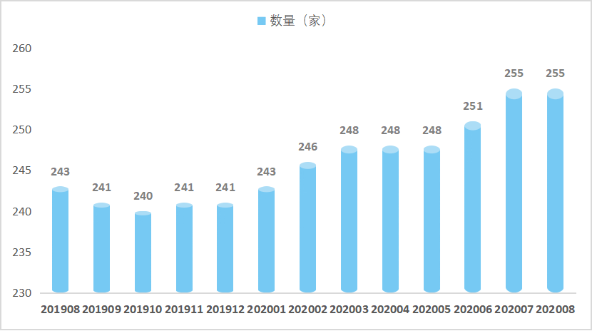 1、陕西省私募基金行业(按照基金管理人注册地口径统计)管理人数量自2019年8月以来月度统计数据如下: