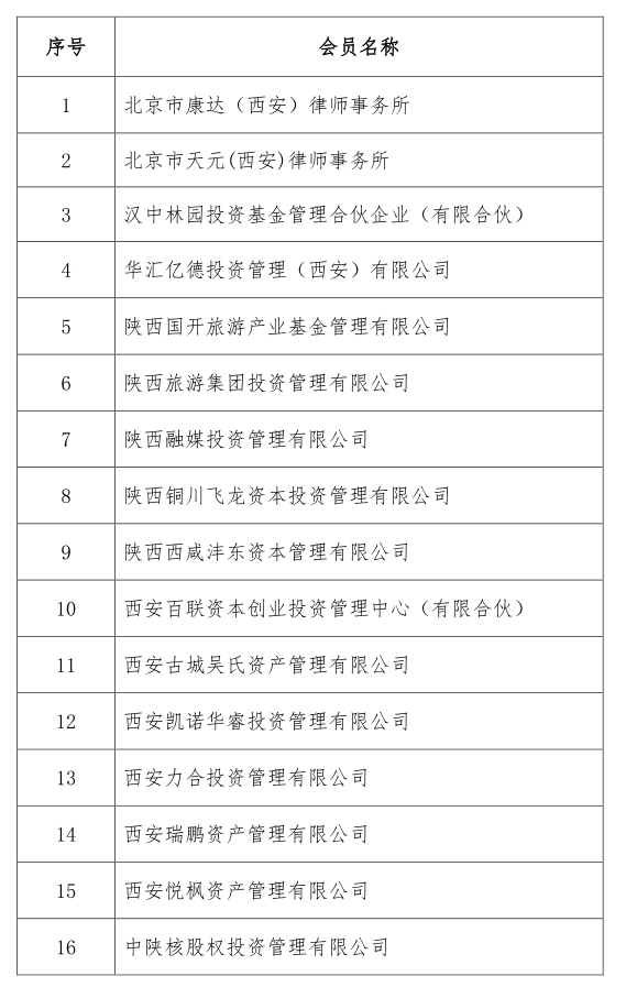 陕西省证券投资基金业协会会员公示(第六批)