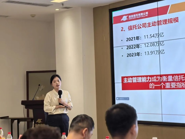 西部信托权益投资部负责人常龙杰分享了《信托公司提高资本市场信托业务主动管理能力的理解与分析》的主题报告。