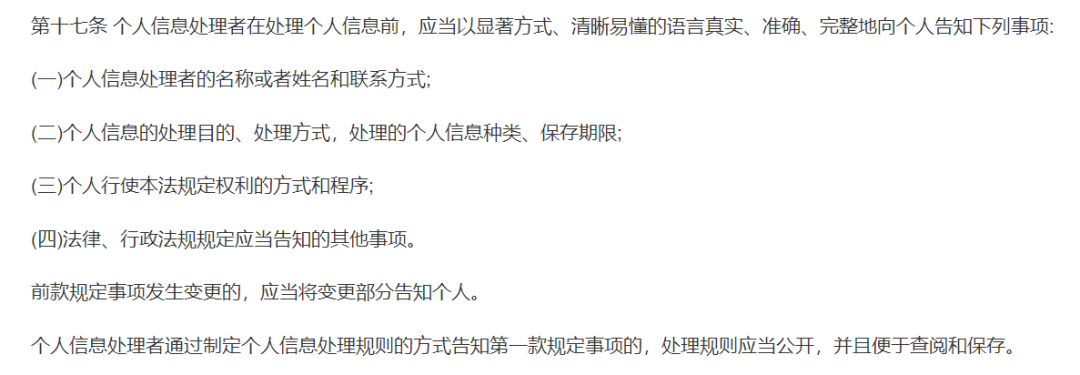 (二)针对个人信息的告知义务