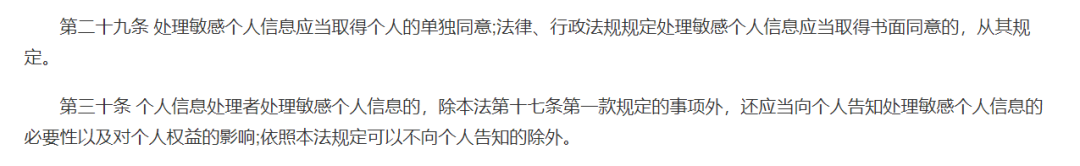 2、敏感个人信息的告知义务: