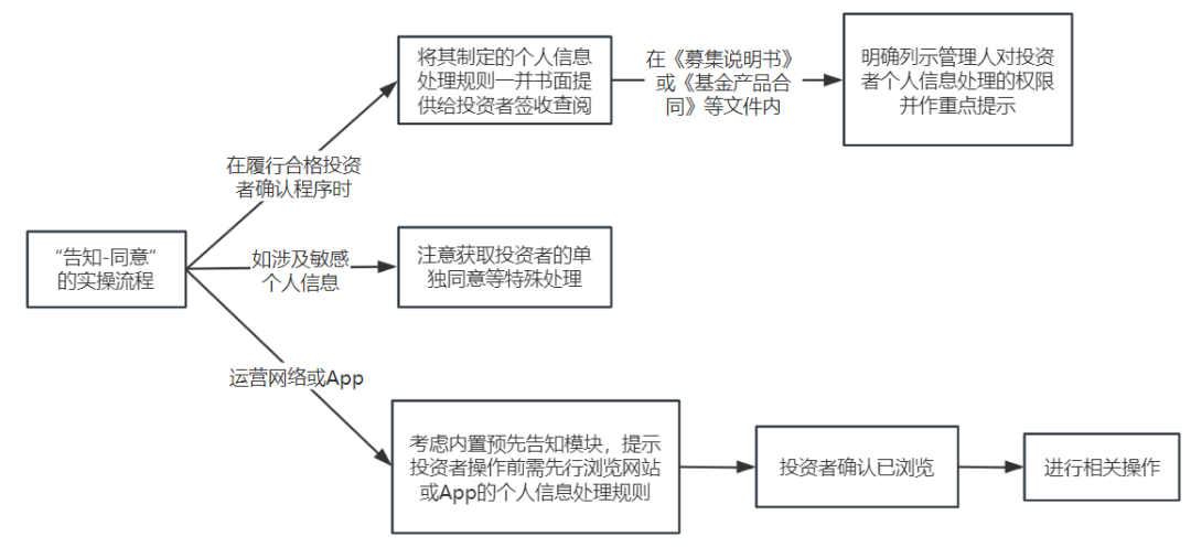 此外,管理人在基金产品运作过程中若与代销机构、托管机构、登记机构、信息技术服务机构等合作,多位个人信息处理者之间在不同的场景下,其对个人的告知义务不同: