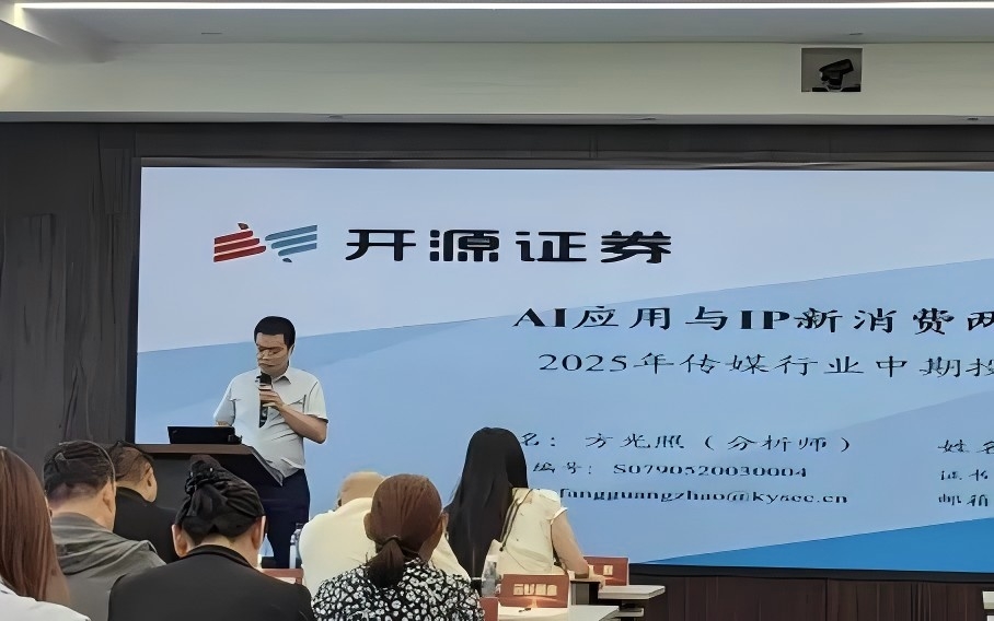 方光照从AI应用端出发,以“坚定看好AI应用+IP新消费”为题展开分享。DeepSeek等国内外头部大模型多模态、推理、Agent能力的持续升级,或助力AI应用商业化继续加速落地,建议继续布局“AI+”应用方向。与此同时,政策不断助力下,涵盖首演首秀、品牌首店、产品首发、展览首展等全链条式发展的首发经济发展模式或提速,首秀、首演、首展等不断与AI、AR、无人机、机器人等高科技融合,叠加IP赋能,或进一步提升对观众的吸引力,引领文娱新消费延续高景气。