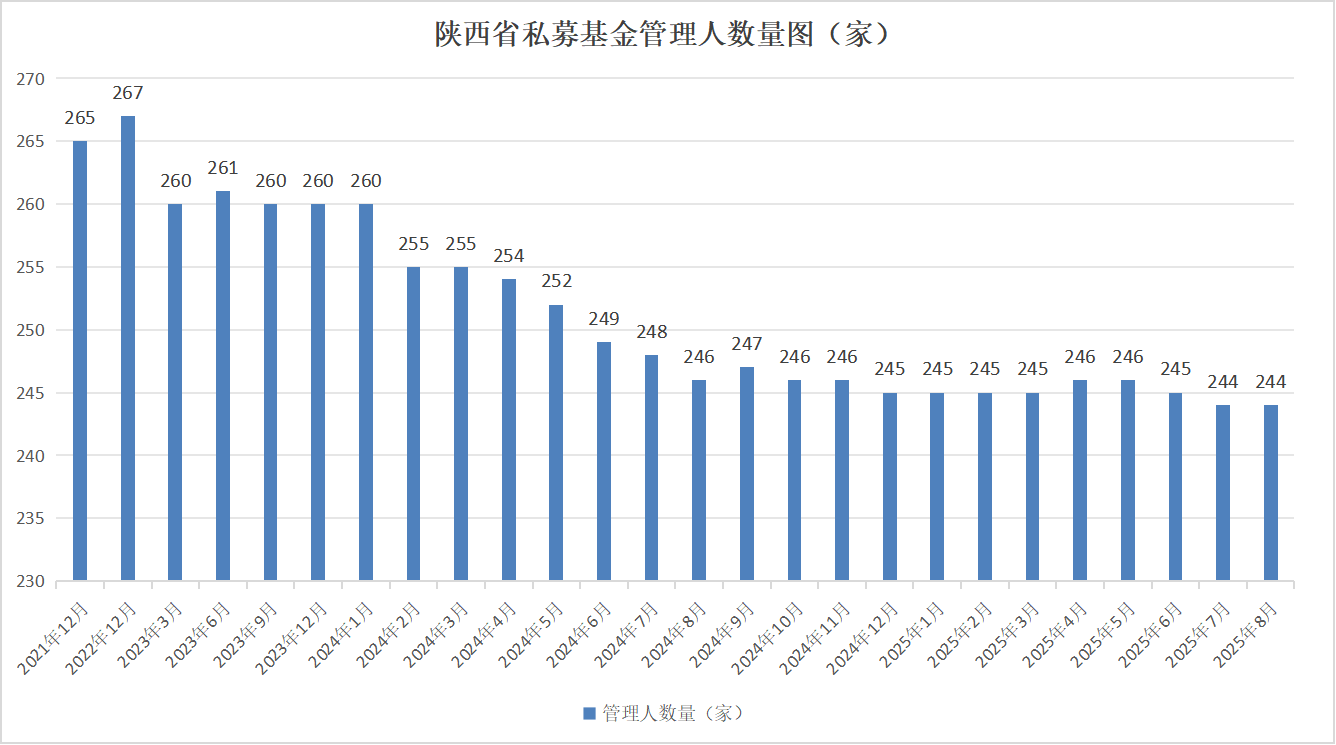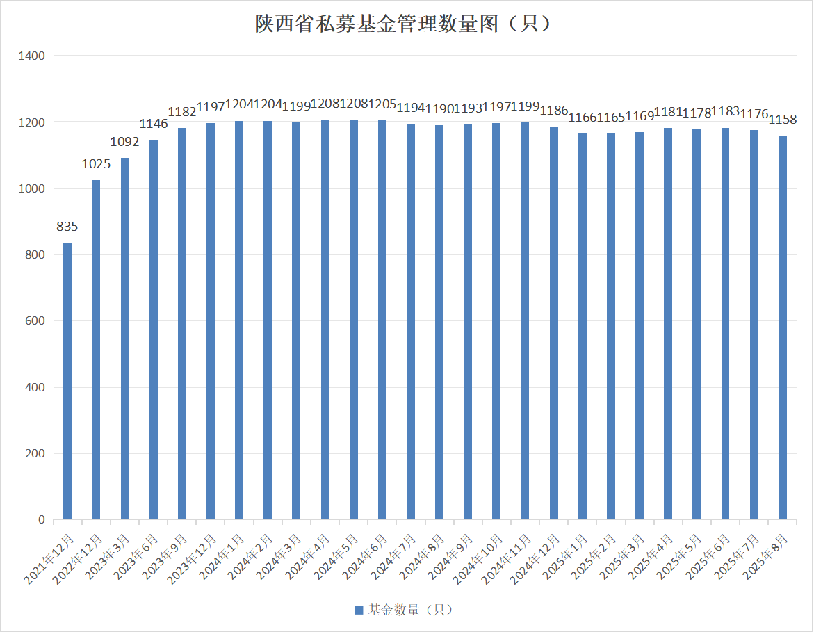 截至2025年8月末,按照注册地口径统计,陕西省私募基金管理机构246家,总管理基金数量1195只,管理基金规模1253.82亿元。