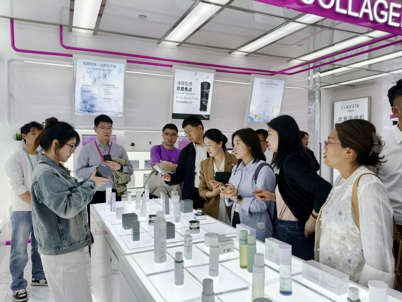 下午3时,调研团抵达巨子生物新工厂。在企业展厅,代表们详细了解了巨子生物自2000年成立以来的发展历程、合成生物学技术平台、核心专利成果以及“可复美”“可丽金”等六个核心品牌。
