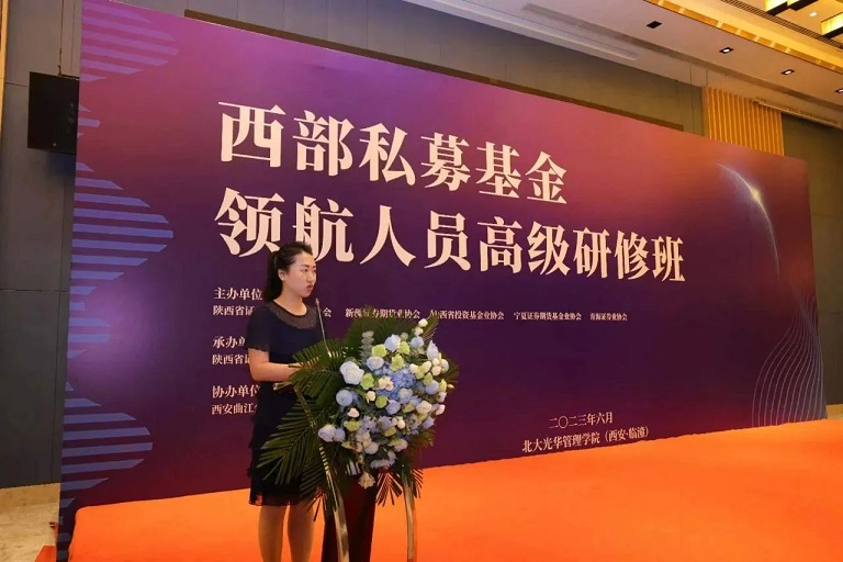 2023年6月19日,西部私募基金高级研修班开班典礼在西安隆重举行。西部五省区52家优秀私募基金机构约70位代表参加了开班典礼。陕西证监局副局长曹淮扬和陕西省地方金融监督管理局二级巡视员张春明出席并做了重要讲话。重庆股权投资基金业协会秘书长曲聪也参加了开班仪式。