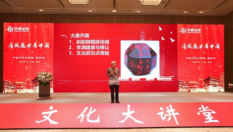 为弘扬中国历史文化,助推行业文化建设,7月13日,在中国证监会陕西监管局的指导下,陕西省证券投资基金业协会和陕西证券期货业协会、陕西上市公司协会与中泰证券股份有限公司联合举办了“唐风盛世看中国”文化大讲堂活动。中国证监会陕西监管局党委书记、局长鱼向东携局领导班子全体成员出席。大讲堂由中泰证券陕西分公司总经理助理王冰主持,约700人现场参会。